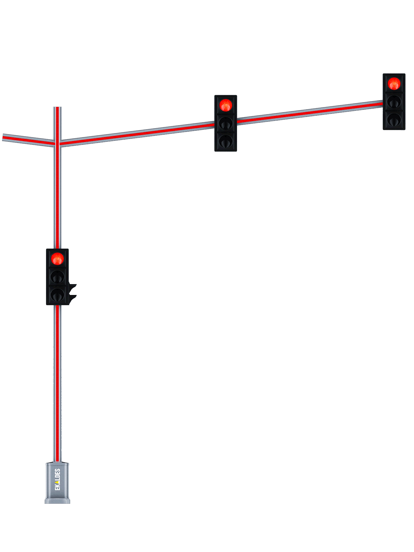 The mast lights up in the same colour as the traffic light. Signalling poles can be seen clearly from far away. This system prevents drivers and pedestrians from crossing at red lights and reduces accidents.